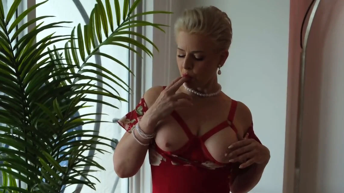Sweet blonde Ksenia plays with herself in this solo video