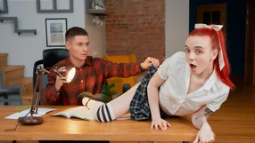 Fiery Redhead Student Fucks College Colleague On Desk