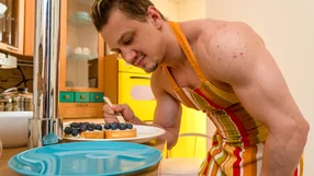Hot Blonde Sucks Boyfriend's Cock Before Breakfast In The Kitchen