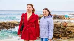 Elle and Sophie having lesbian encounter in the living room