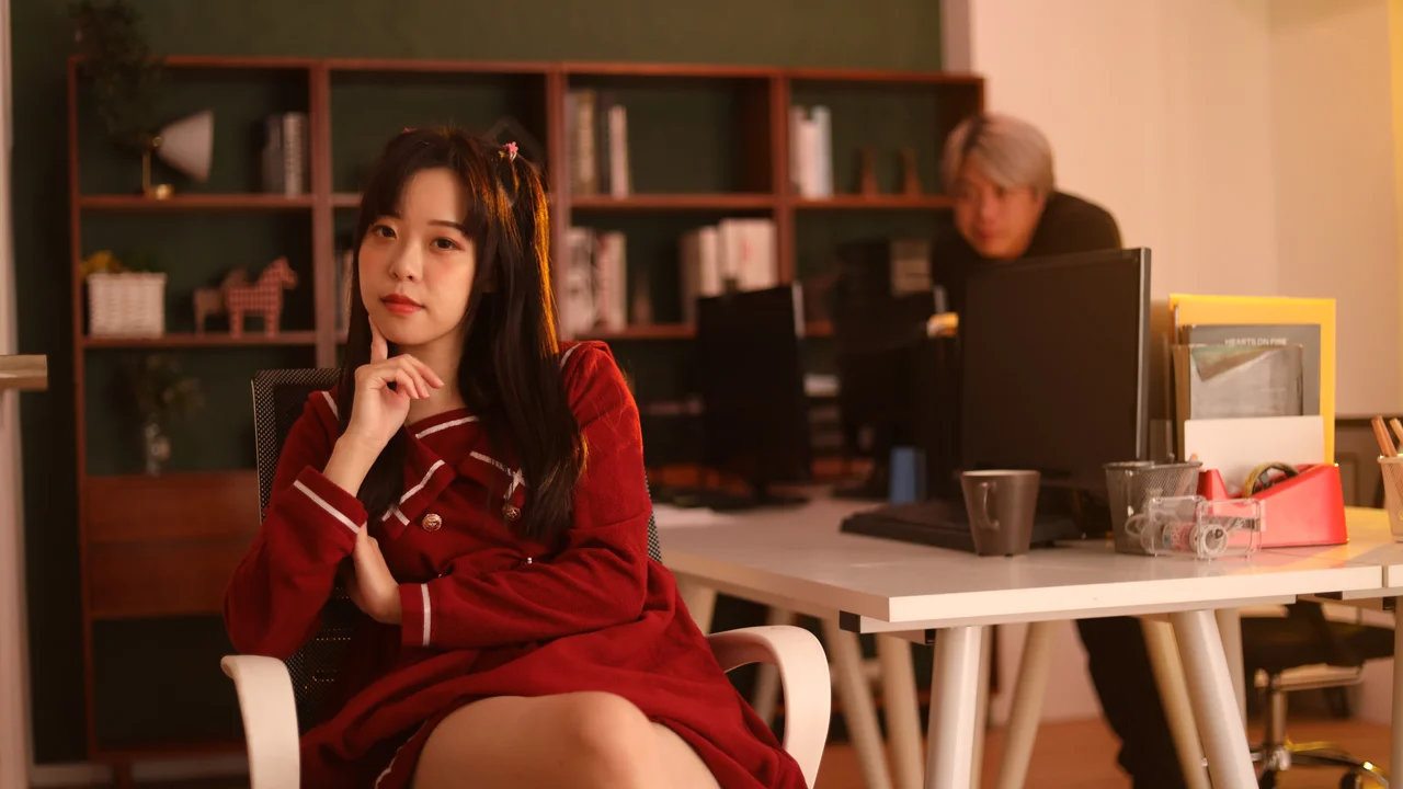 Young maid with a cute face is teased by her boss