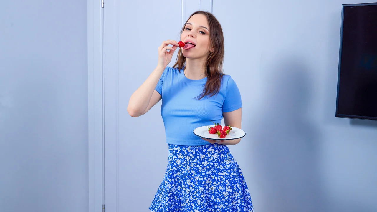 Let's get ready! Maddy Nelson already looks incredible. The best is yet to come as she's going to drop her all-blue outfit. The cutness is intense as well. The girl is SO pasty and sexy.