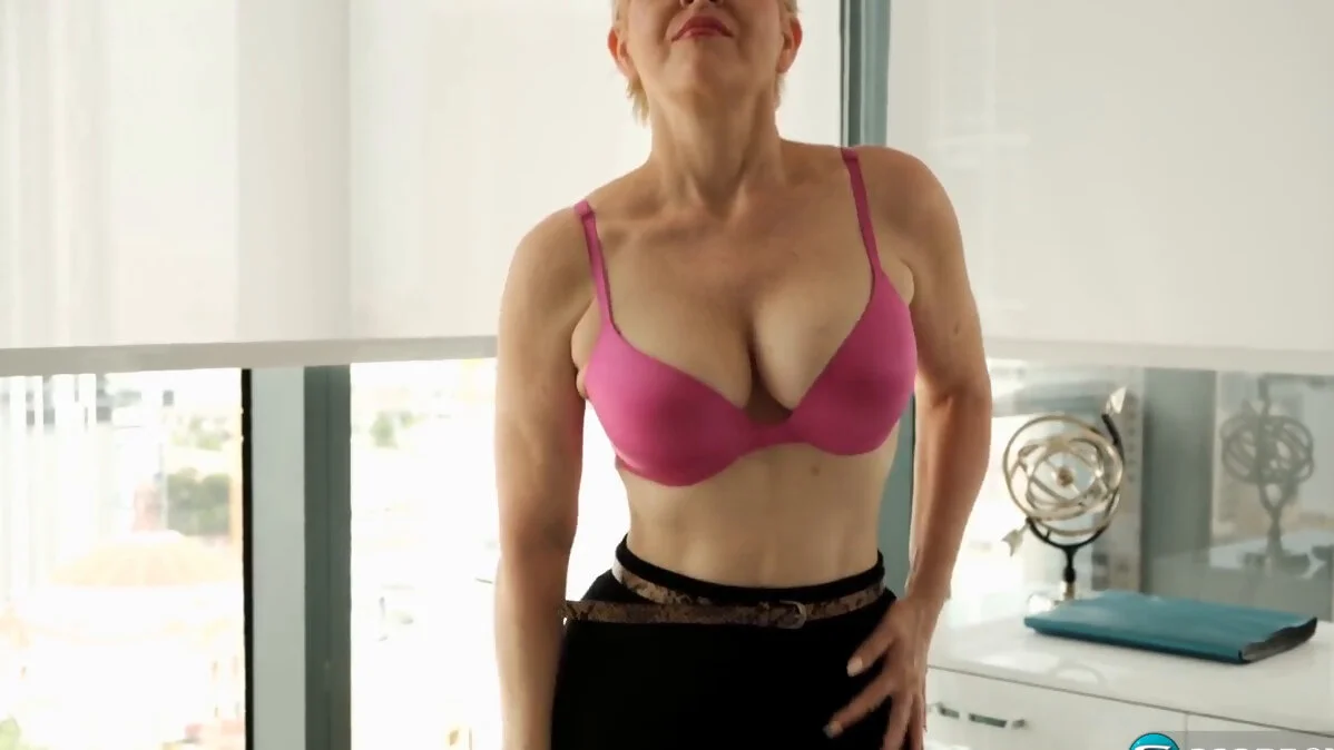 Attractive naughty blondie babe sucking fingers while teasing huge angelic tits and hard nipples until gets wet from orgasms and spanking on juicy booty until cum on nails.