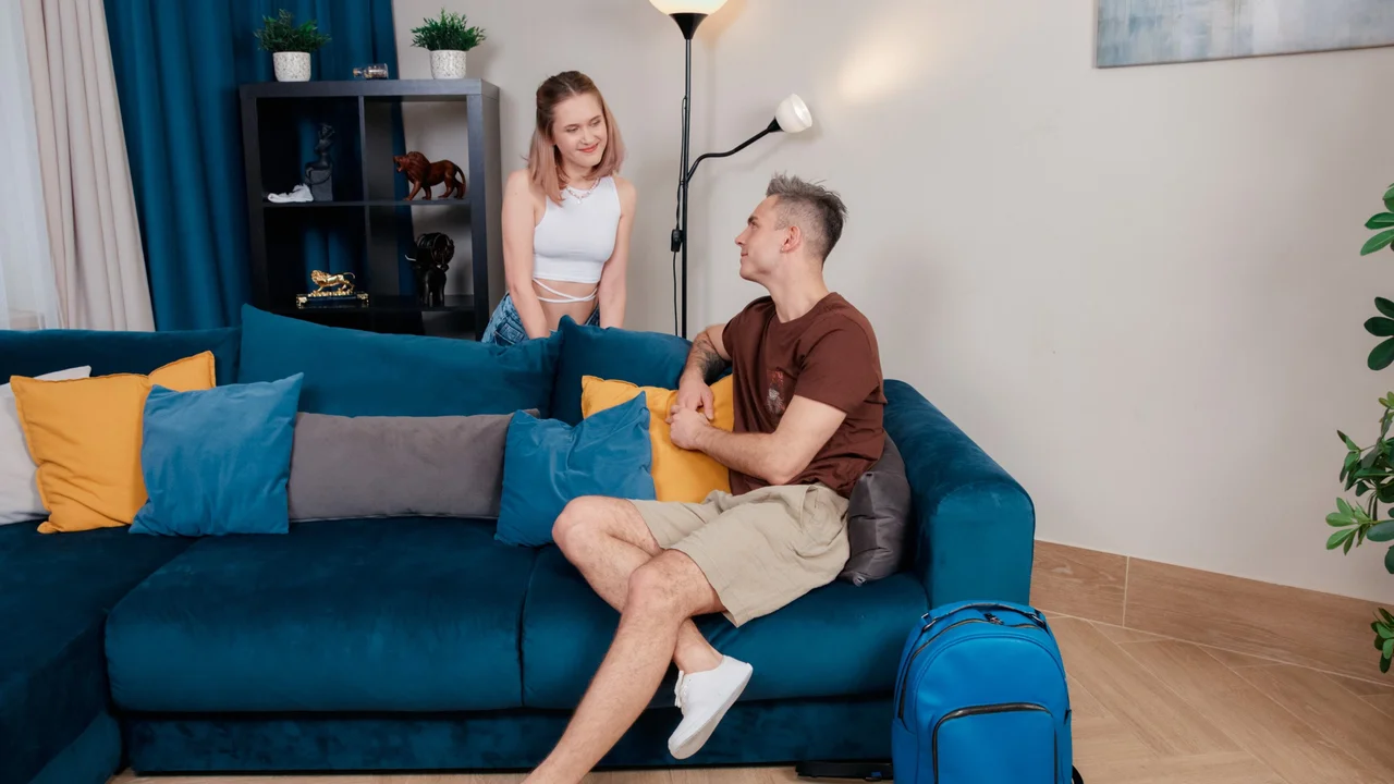 Passionate babe craves to give deepthroat blowjob to pretty boy with fat cock until losing a breath. Seductive sweetie spread legs to have tight cunt pounded with wide manhood until creampied between her legs.