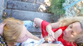 Nerdy blonde sucks a dick and spreads legs to get cock