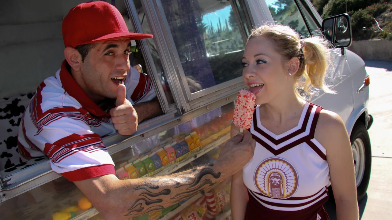 Sexy blonde Cindy Loo gets in the van and takes on a cock
