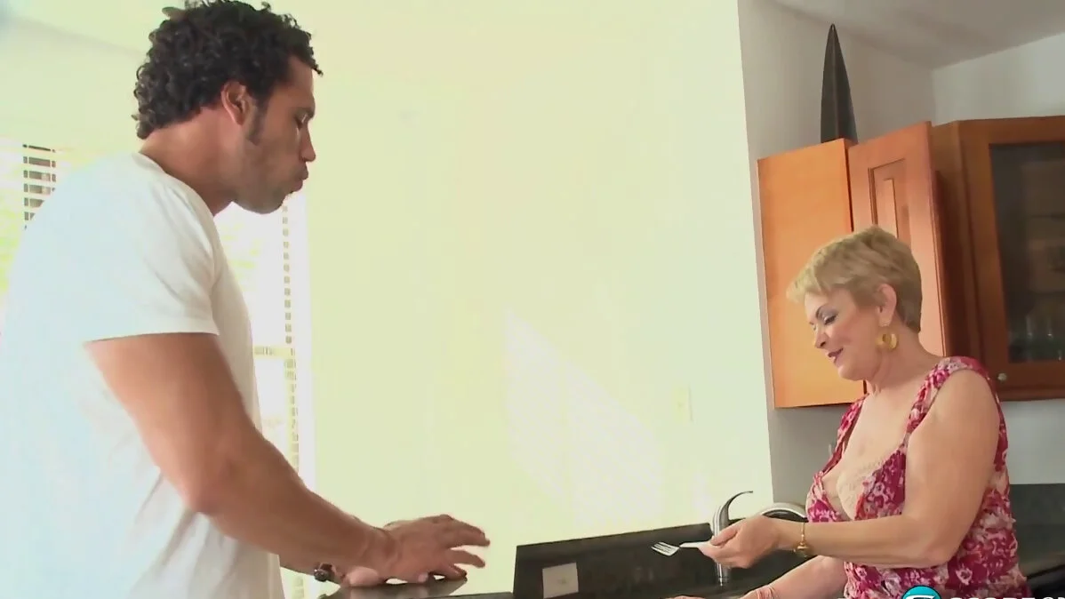 The Latin lover Carlos Rios just moved into the neighbourhood, and the short-haired GILF Lin Boyde is here to give him a warm welcome. She does this by giving him a blowjob and a handjob.