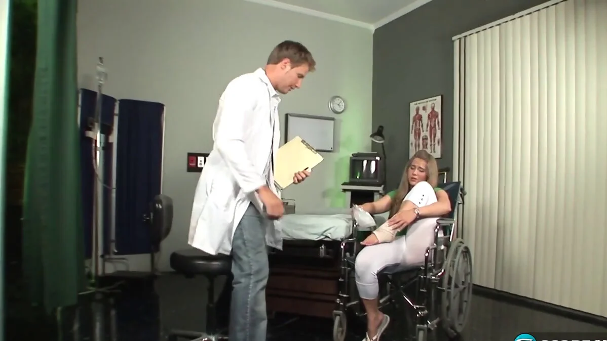 Levi Cash is a perverted doctor who is taking good care of the blonde chick Megan Reece, who recently hurt her legs. The man's methods are unconventional, first sucking her toes and then licking her twat.